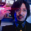 Description: Geryon holding his golden rubix cube, the cube glows.